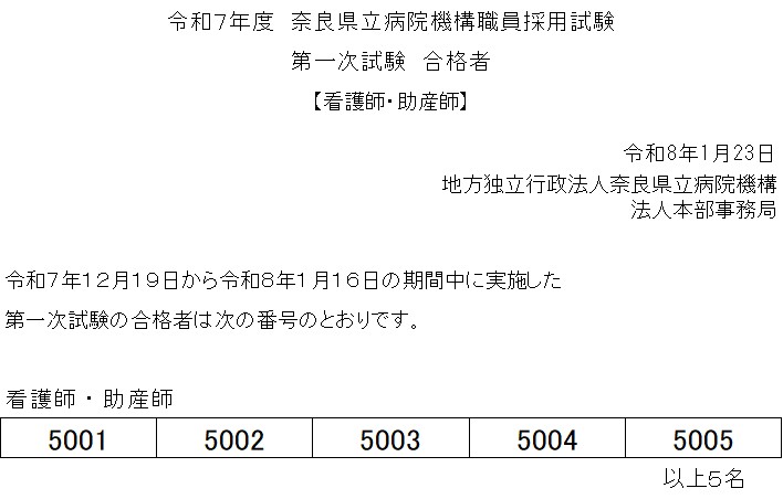 看護師・助産師採用試験(1月試験・一次試験)合格発表